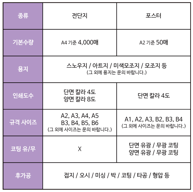 ◆ 용지는 일반적으로 많이 쓰이는 재질로 적었으나, 그 외에 수입지의 일부 용지들도 가능합니다.
